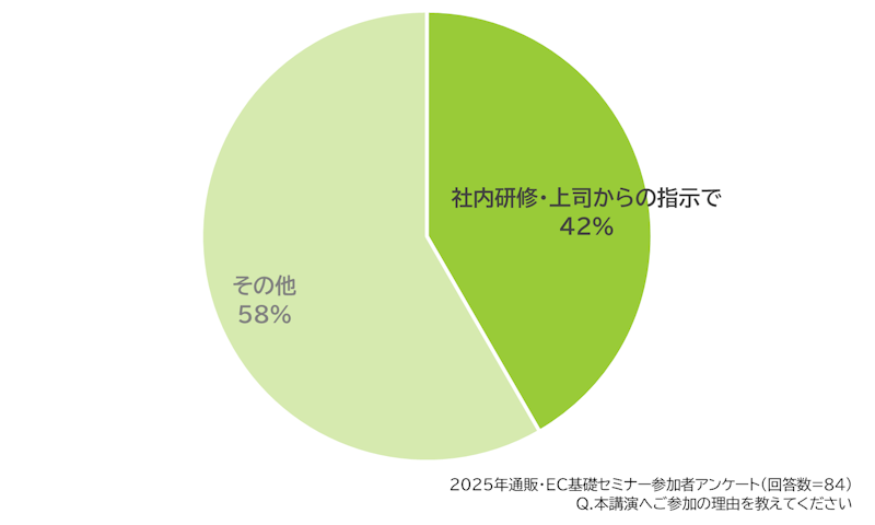 2025年度開催では、参加された方の40%近くが「社内研修・上司からの指示」を理由にご参加いただいており、